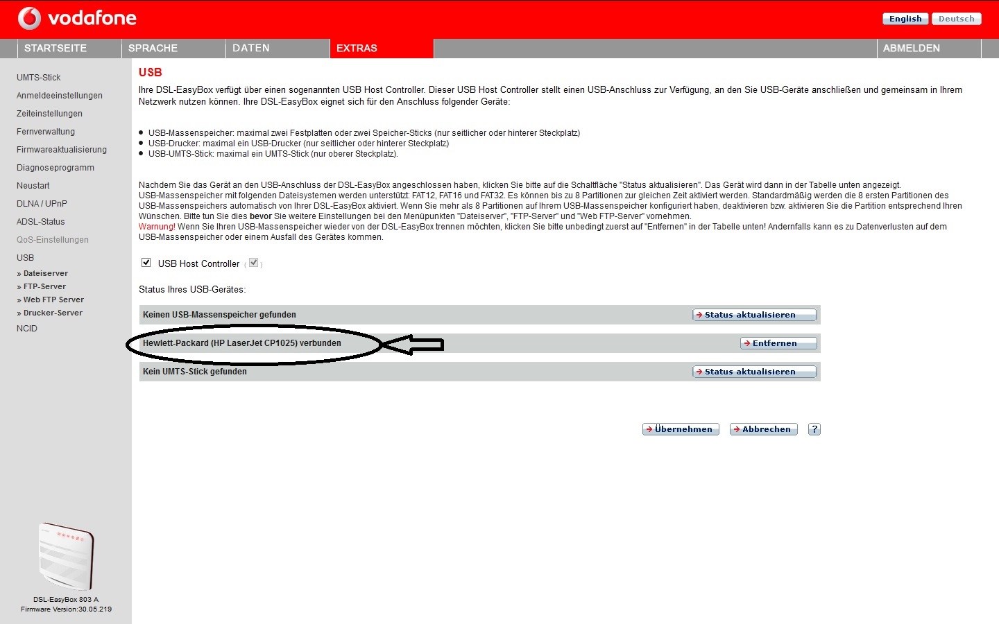 HP LaserJet CP1025 an DSL-EasyBox 803 A anschließen
