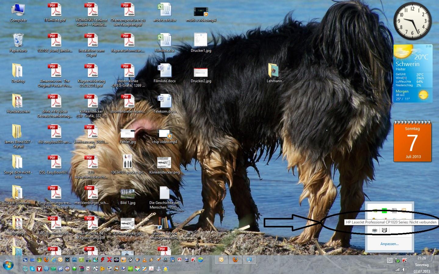 der Drucker ist am USB Anschluß an dem vorher der HP Laserjet war. Ich habe alles so gemacht wie in der Anleitung. Auch den Treiber hab ich installiert.