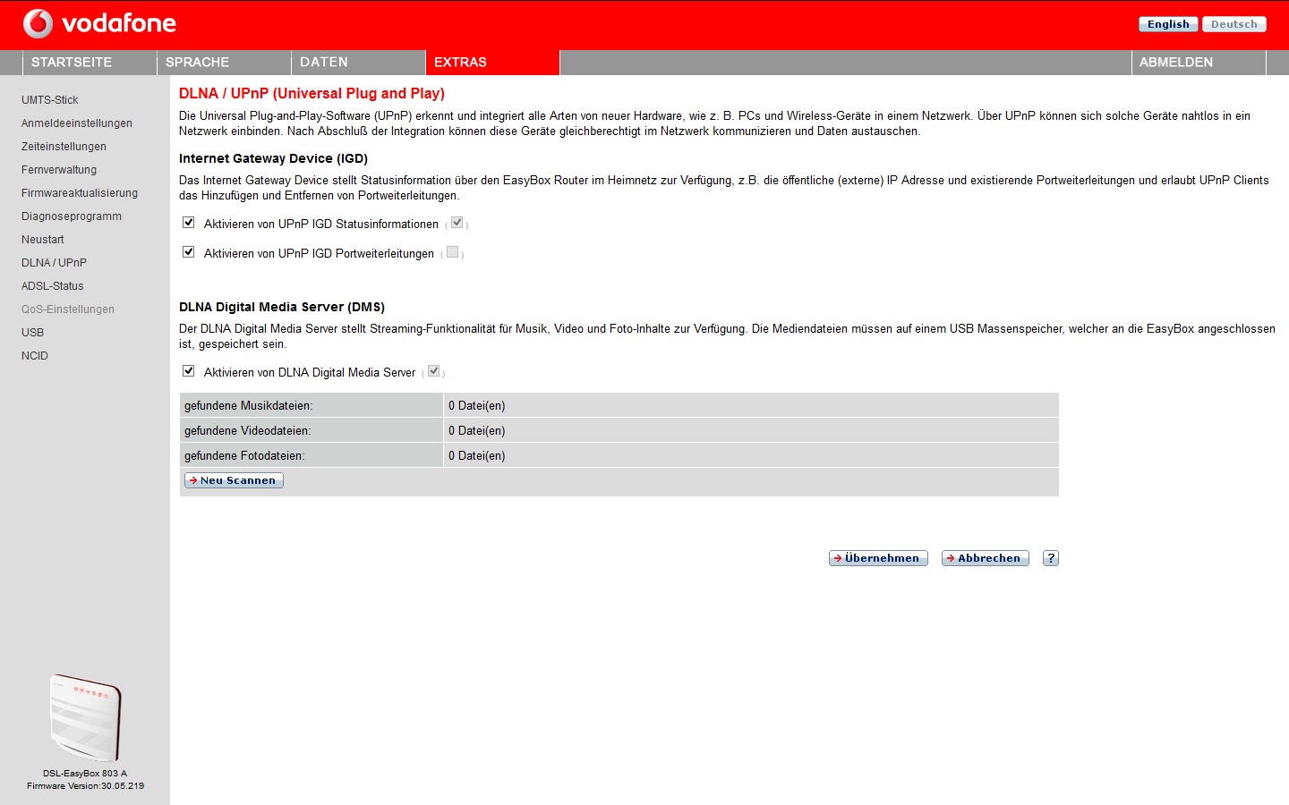 Hast du in der Easybox die Funktion DLNA und UPnP angeschaltet?