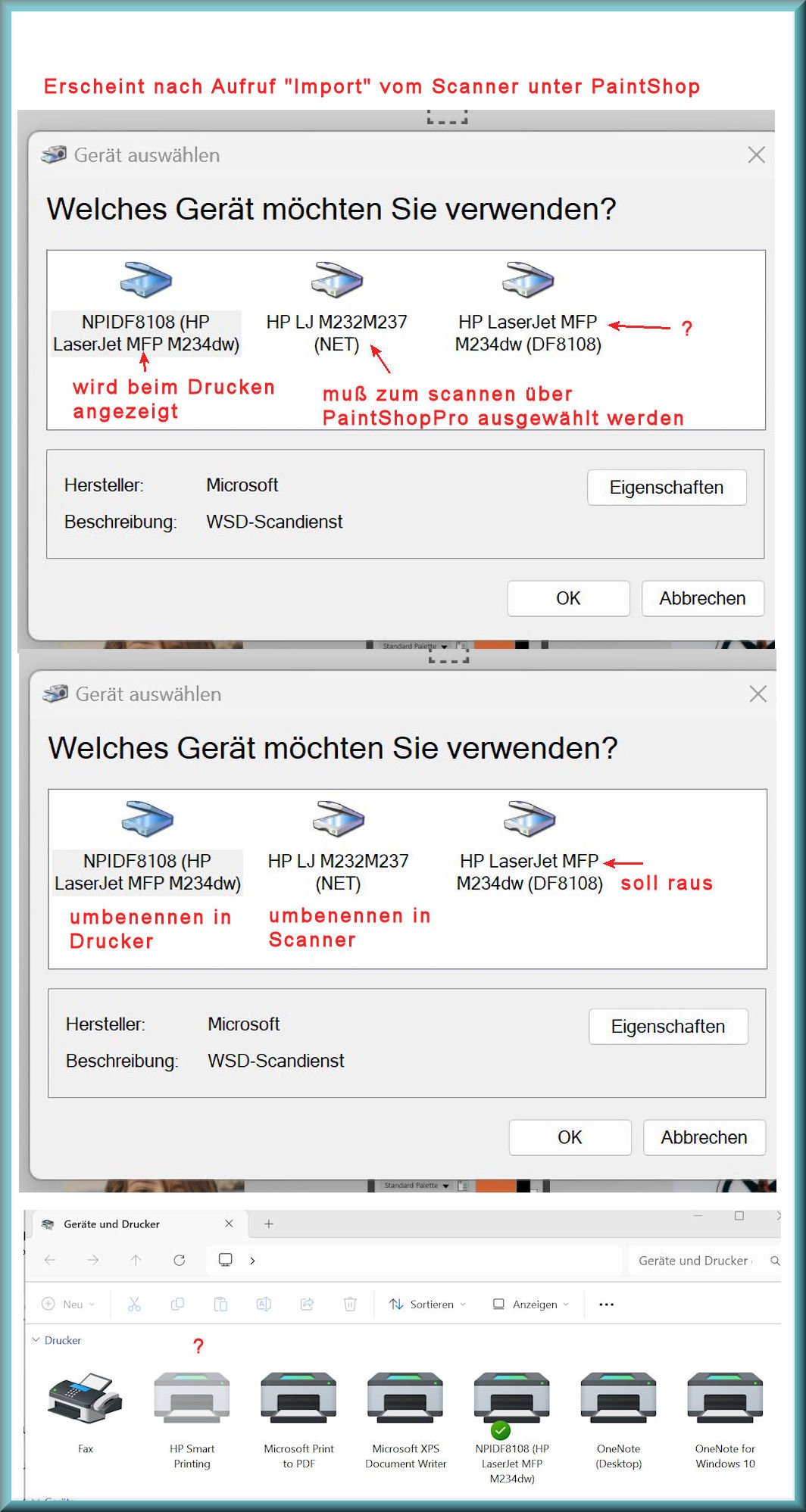 Habe unter Windows 11 pro (aktuell) einen Multifunktions SW "HP LaserJet M234dw" installiert (LAN)