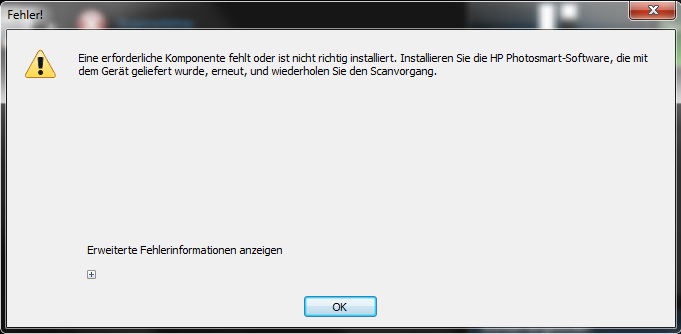 Ich habe HP Photosmart Essential 3.5 natürlich installiert (mehrmals de- und installiert) und die neueste SW von HP schon öfters neu installiert, aber es bleibt bei diesem Fehler. Auch mit dem ScanDoctor HPPSdr.exe hatte ich keinen Erfolg.