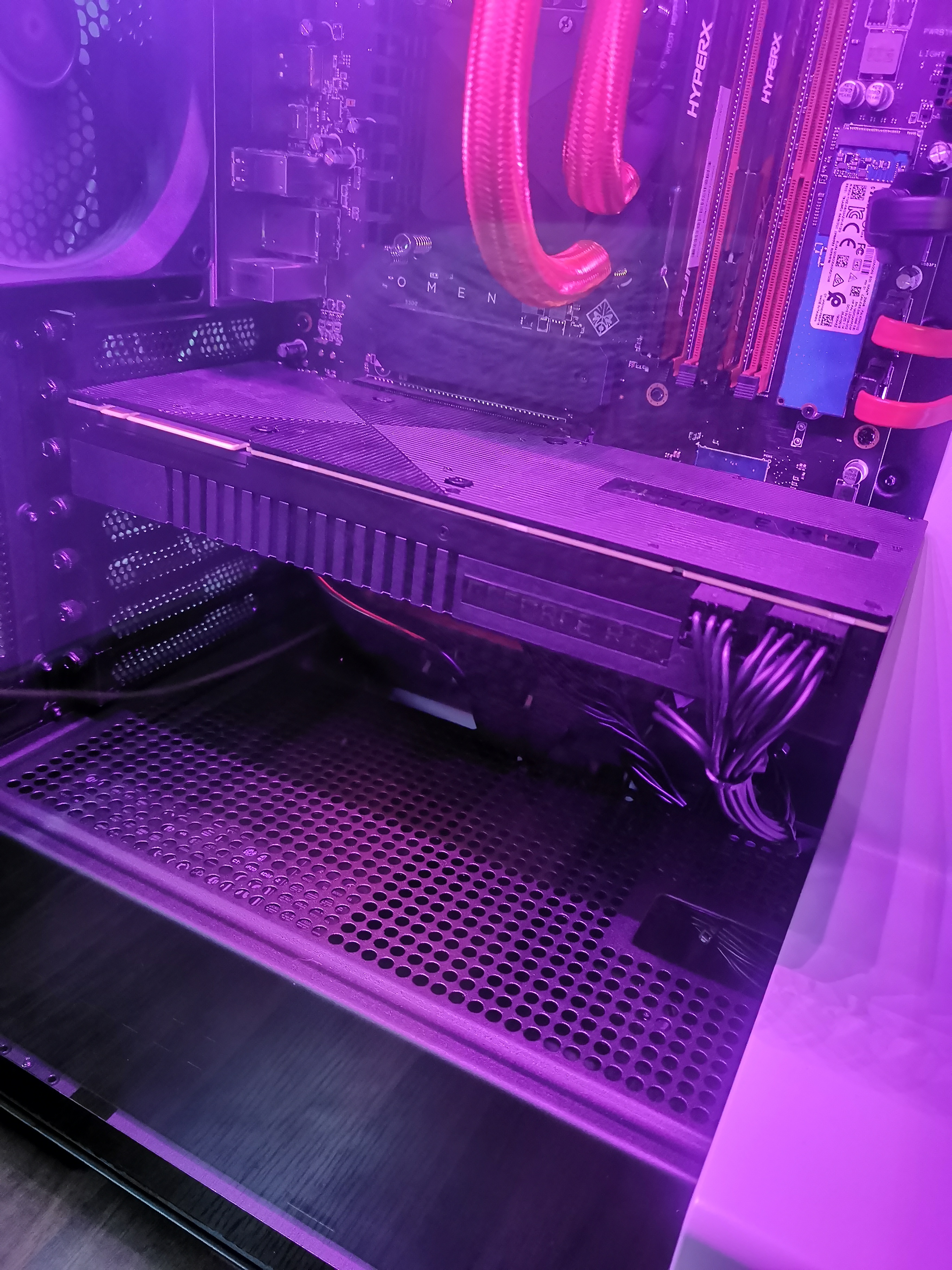 Zum eigentlichen Problem. In dem PC ist eine 2080 installiert, speziell hergestellt für HP (Bilder im Anhang) die Karte hat einen Blower Kühler und erreicht im Omen Gehäuse Spitzen von 88 bis 89 Grad. Der Airflow ist in dem case nicht vorhanden, ein Lüfter an der Hinterseite und das wärs. Die heiße Luft staut sich regelrecht in dem Gehäuse.
