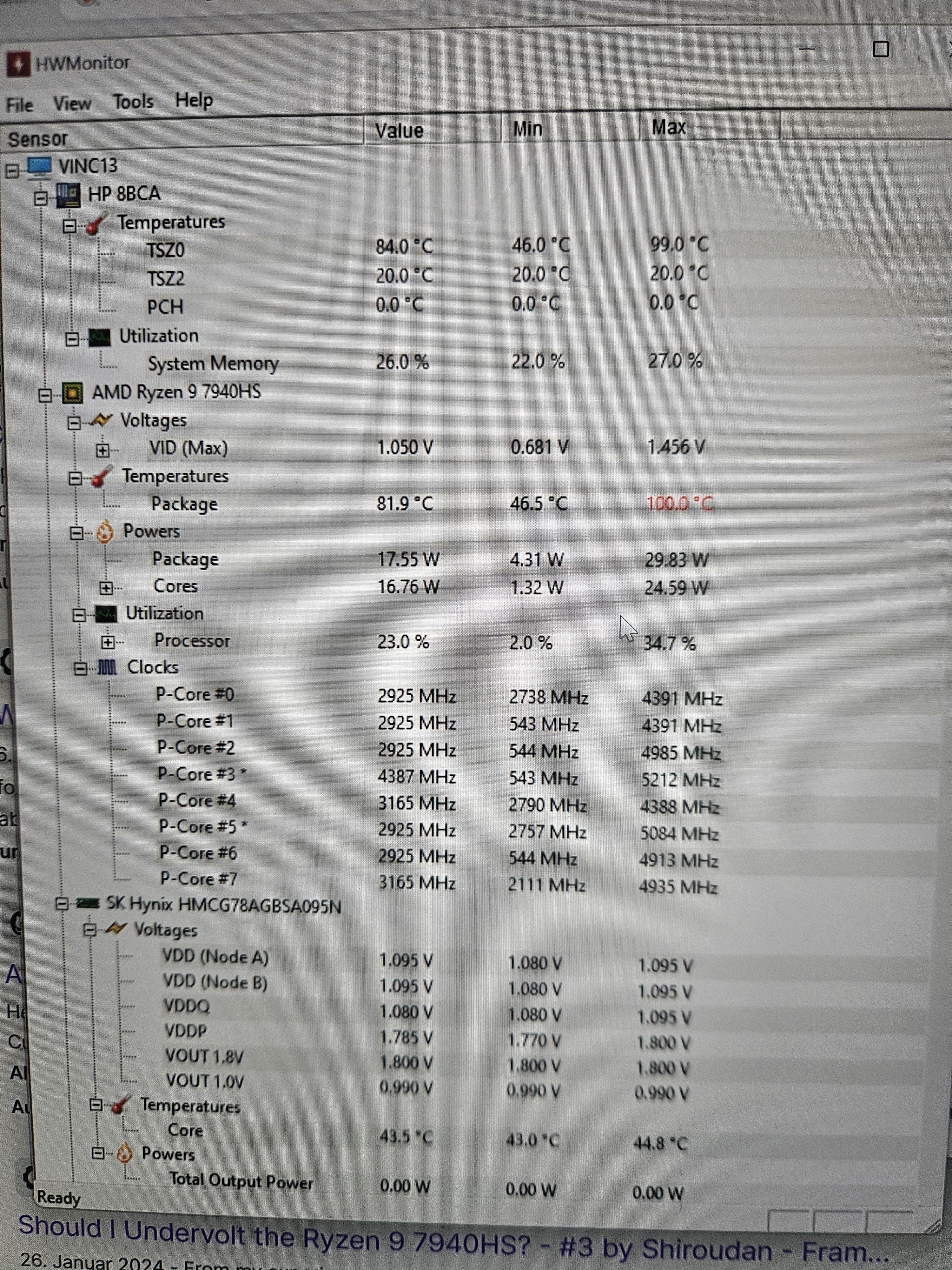 Too likely is there a serious problem with the thermal paste… A fast notebook like this should definitely have a cooling solution that can handle more than ~30W wattage on the CPU package. (Even my Ideapad 5 Pro with 7840HS can handle more than 30W with way lower temps)