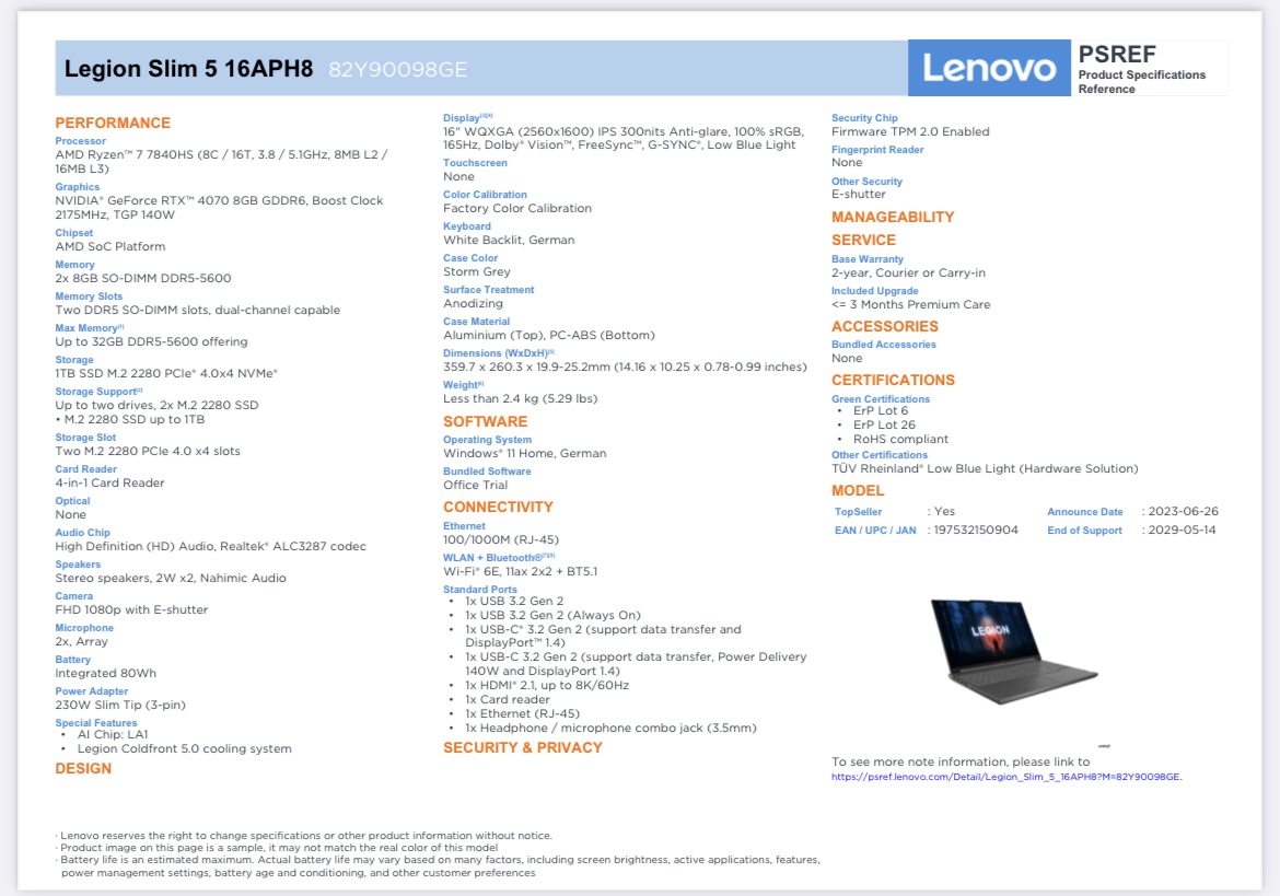 Bei Amazon gibt es da Legion 5 Pro mit RTX 4070 für 2000€, das Legion 5 Slim, erneut mit der RTX 4070 aber für nur 1470€ - da jedoch nur mit 16GB RAM und dem 7840HS.