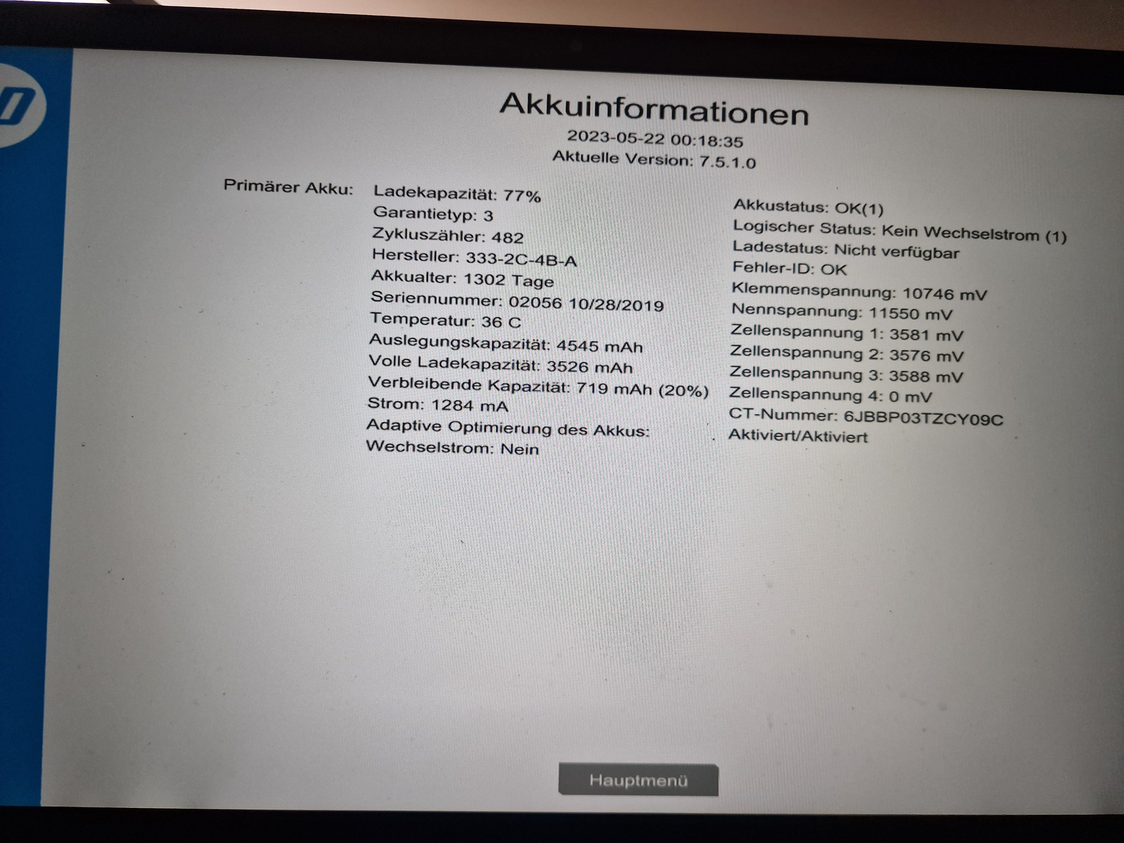 Daraufhin habe ich einen Akkutest gemacht, der zeigt an das auf Zelle 4 keine Spannung ist. Meint ihr es liegt daran, das er nur lädt wenn er ausgeschalten ist?