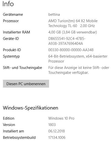 meine über 70jährige Mutter hat einen ca. 10 Jahre alten Laptop, vom Typ HP Pavilion dv6000.