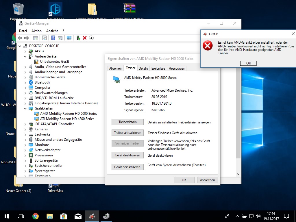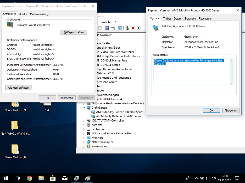 Updates alle installiert, alles schön und gut, Treiber sagt Windows 10, sei auch runter geladen sowie installiert, mehrmals neugestartet aber jedes mal sagt mir der AMD Treiber, dass er nicht gestartet werden könne oder sowas - Windows sagt das selbe in den Benachrichtigungen.