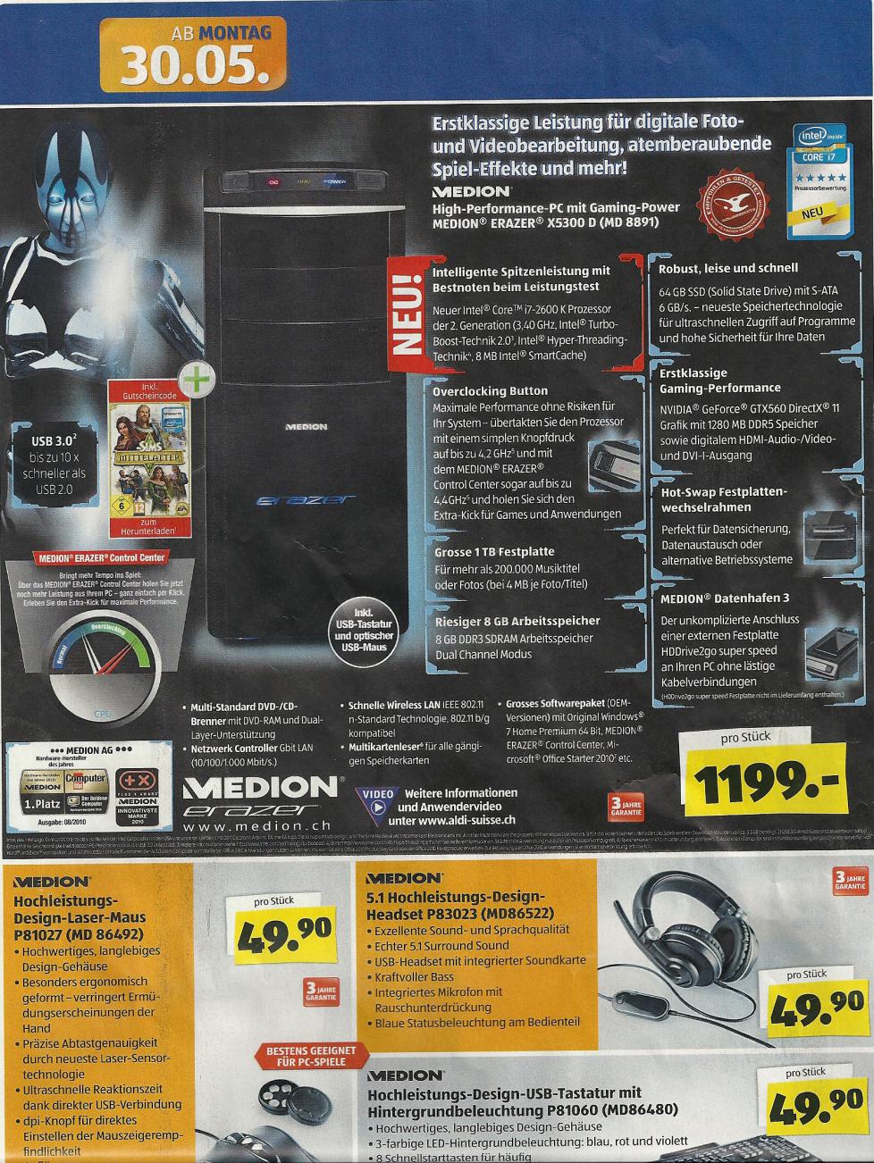 1. PC = Medion Erazer X5300 D (MD8891)