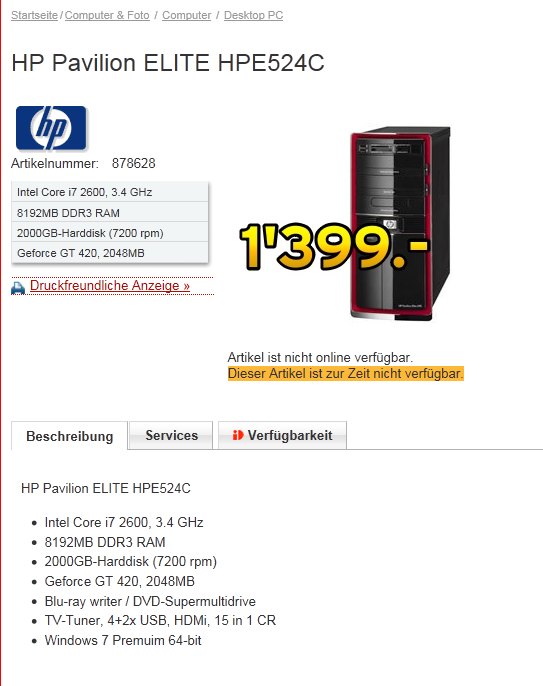 - Nvidia Geforce GTX560 DirectX 11 mit 1280 MB DDR5 Speicher (Soll nach Google-Suche von mir, besser sein als der GT 420 vom HP)
