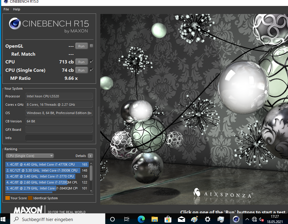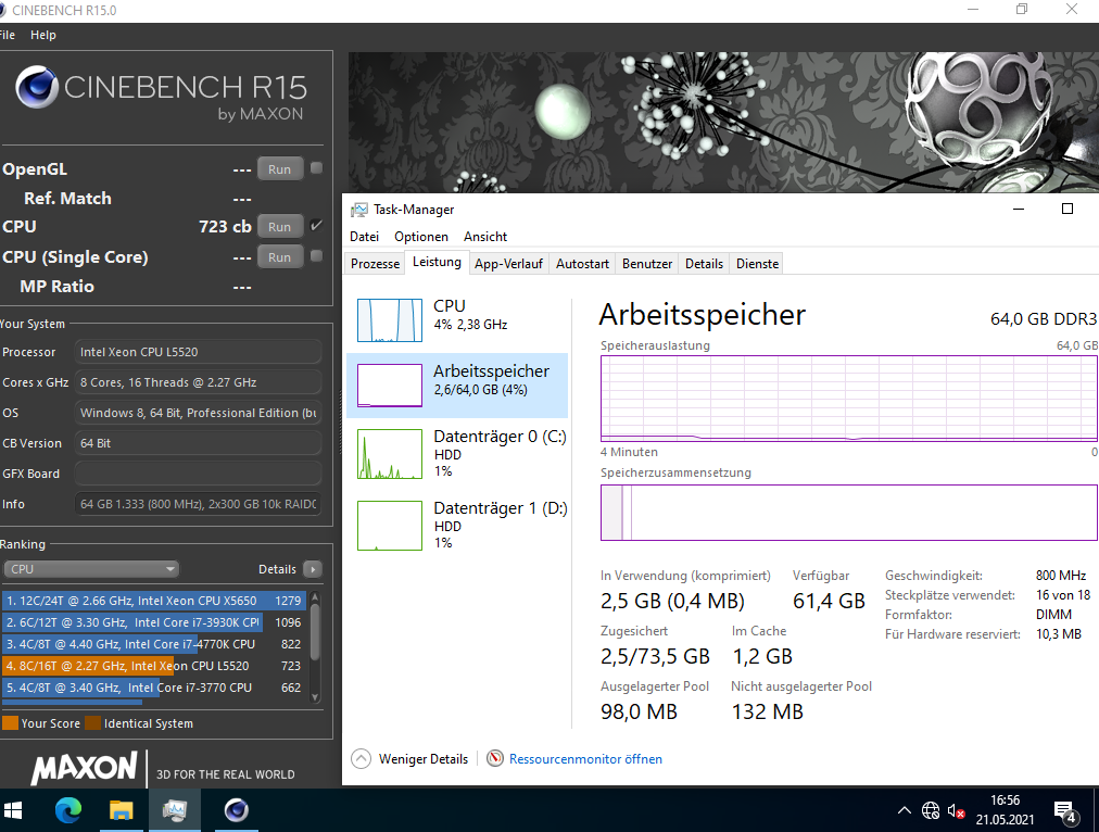 Cinebench R15: 723 cb