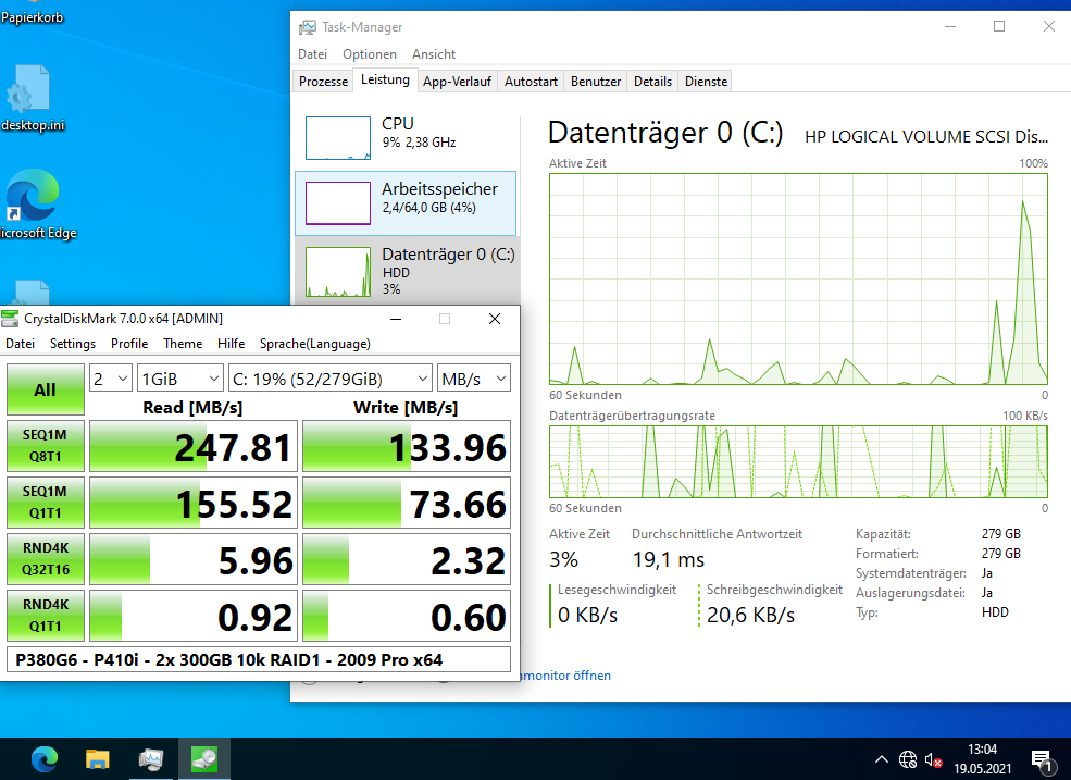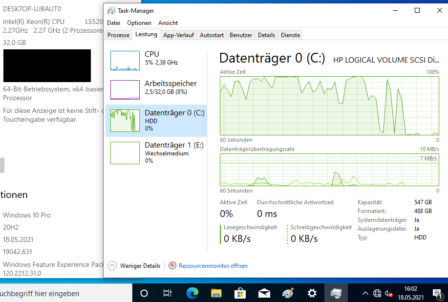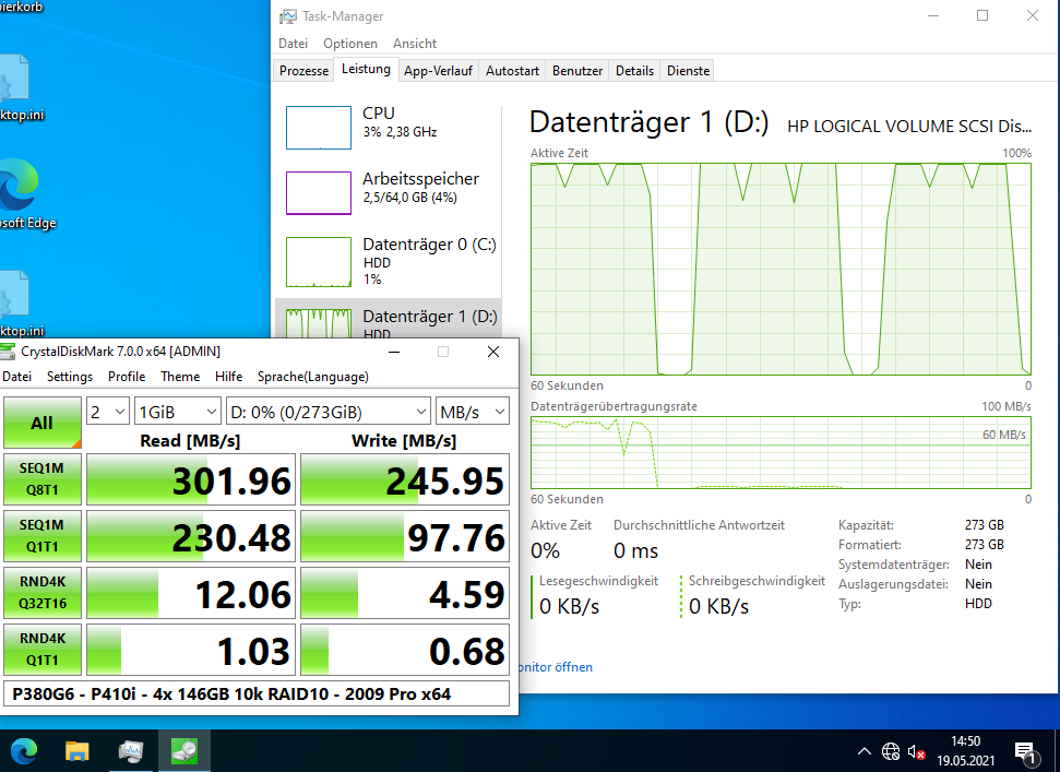 Windows interessiert sich nur für den Controller, an dem die Festplatten angeschlossen sind. Wenn es einen Treiber dafür hat, oder man diesen im Setup laden kann(*), dann dürfte es egal sein, denn das Betriebssystem 'sieht' nur das auf dem Smart Array Controller (P410i) erstellte Volume, aber nicht die einzelnen, physikalischen Festplatten.20cm schrieb:, dieser hat 6 Festplatten und zwar SAS Festplatten mit insgesamt 3.6TB und jetzt stellt sich mir die Frage ob ich auf einer SAS-Festplatte Windows 10 Pro installieren kann oder ginge das nur mit einer herkömmliche HDD?