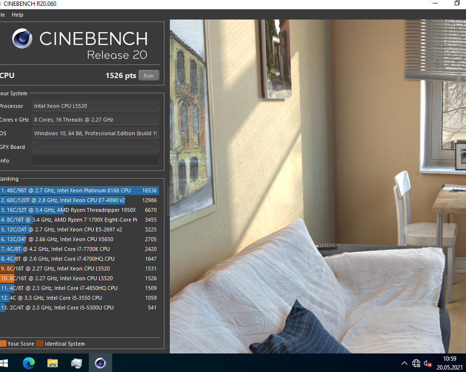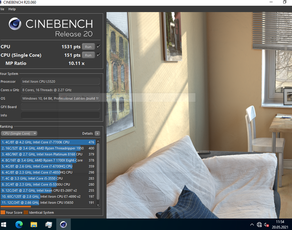 Cinebench R20: 1531 pts