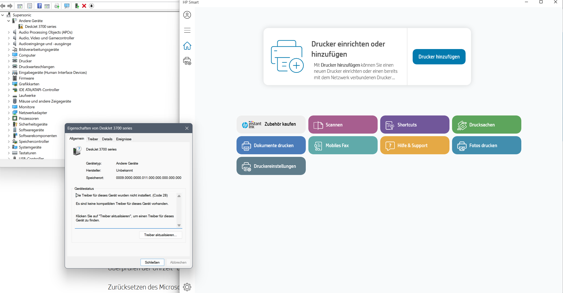 hp smart findet usb Drucker nicht HP 3760