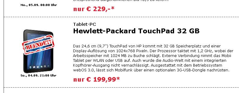 Das würde ich nicht unbedingt sagen, denn durch den Firesale hat HP über 1 Million Touchpads abgesetzt wodurch eine sehr breite Nutzerbasis entstanden ist auf der man aufbauen kann. Zwar hat Apple 10 mal mehr Pads verkauft und schwimmt daher HP weit voraus, allerdings wurden inzwischen angeblich mehr Touchpads als Android Pads verkauft, wodurch man zur Nummer 2 in der Rangliste aufsteigen konnte.