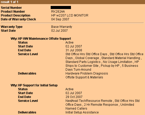 Bin nun etwas verwirrt (wo bei HP kann man das abfragen?). Wie sieht denn das nun bei dem w2207 aus ? Ist es sinnvoll eins dieser Care Packs dazuzukaufen ? Wenn ja, welches Care Pack ist denn nun das Richtige ? Ich weiß, Fragen über Fragen. Aber vielleicht kann da ja mal einer Licht ins Dunkel bringen !
