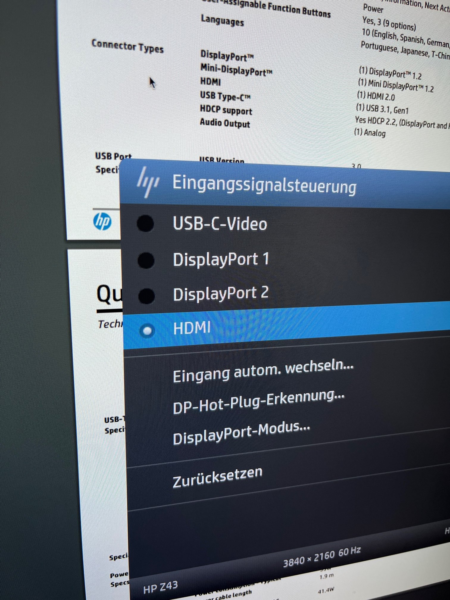 Ich stehe vor einem Rätsel. Ich habe ein 43 Zoll HP Monitor von einem IT-Kumpel geschenkt bekommen.