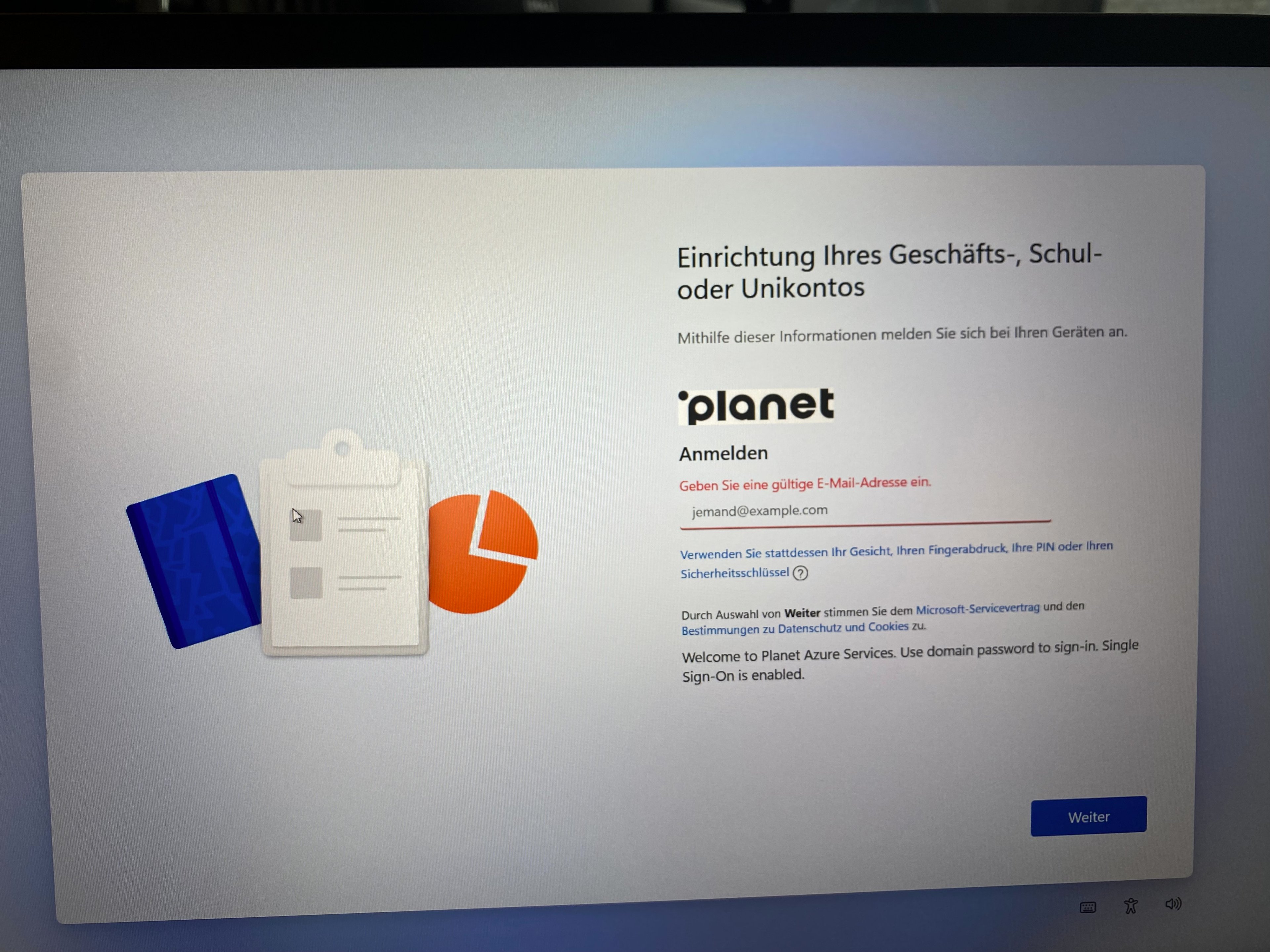 wir haben eine Lieferung neuer HP ZBooks von unserem IT-Partner geliefert bekommen. Diese Laptops scheinen mit einem vorkonfigurierten Image ausgeliefert worden zu sein, das nicht von HP/Microsoft ist. Ich schaffe es aber nicht, dieses Image loszuwerden, bzw. zu löschen. Im Anhang findet sich ein Bild vom Setup, der nach Eingabe von Sprache, Tastatur und Land erscheint.
