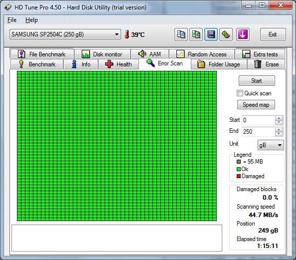 Lass doch bitte mal den Error Scan (kein Quick Scan!) von HD-Tune durchlaufen.