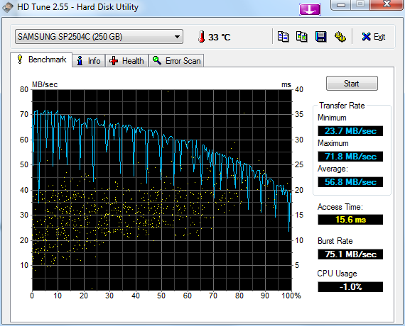 Ich habe mal Benchmark von meinen beiden Festplatten durchlaufen lassen und das von meiner Samsung sieht recht komisch / ungewohnt aus. Sind die starken schwankungen normal?