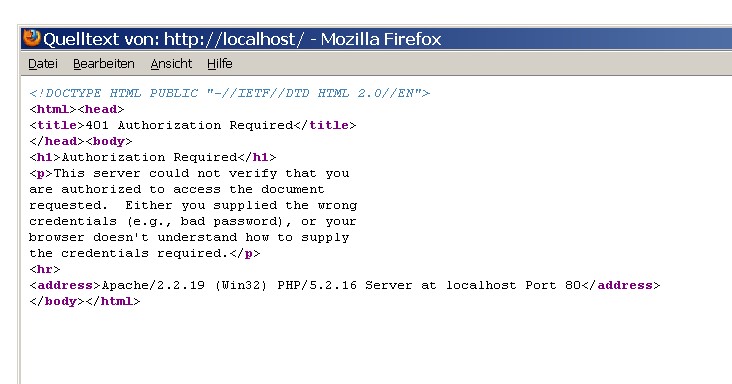 ich benutzte für ein bestimmtes verzeichnis auf meinem server htaccess um es vor fremdem zugriff zu schützen. nun, rufe ich die geschütze seite auf, erscheint die messagebox mit der passwort eingabe, drücke ich abbrechen: erscheint eine seite mit dem inhalt