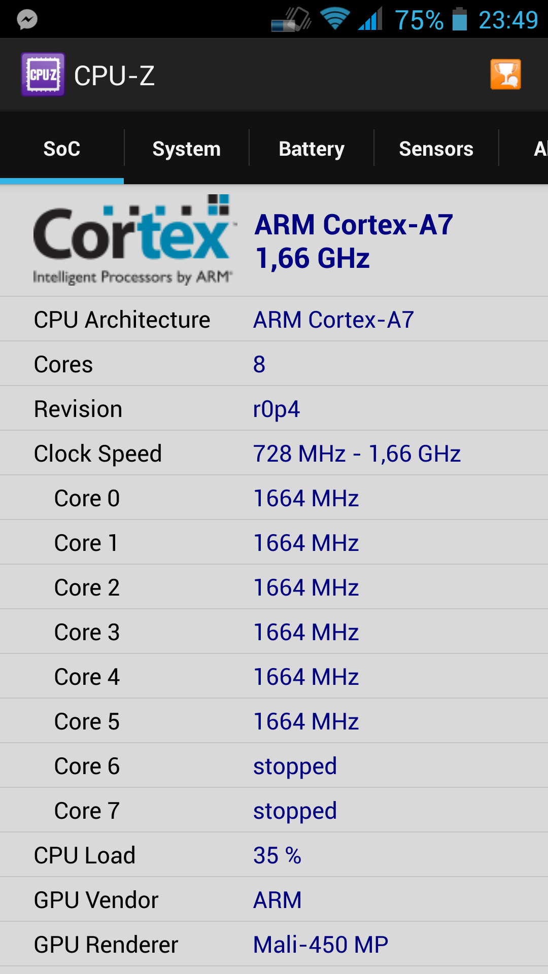 Ich selber verwende gerade ein Smartphone mit einem Qualcomm MSM8255 auf 1,4 ghz, single Core.