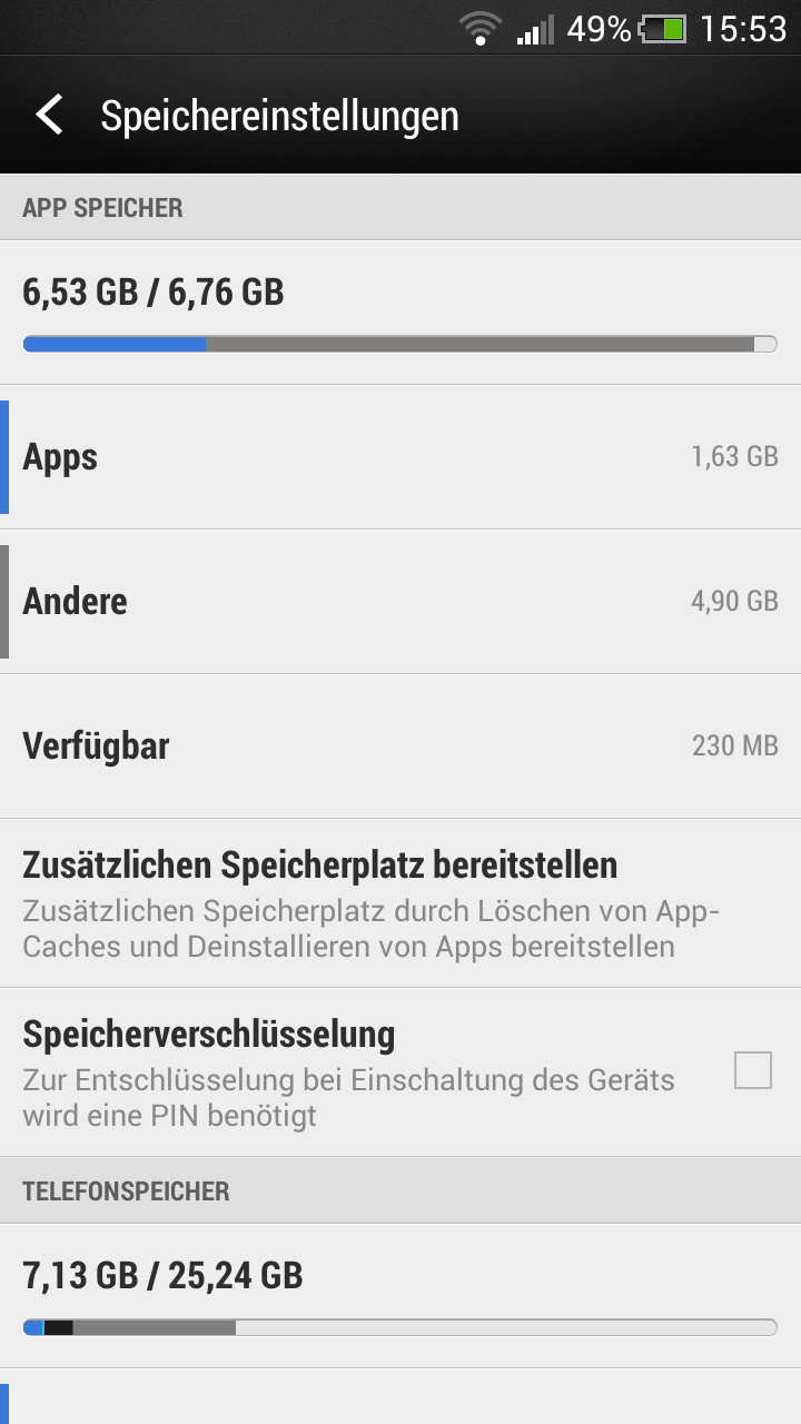 habe leider in letzter Zeit das Problem, dass aus irgend einem Grund mein Speicher zu läuft, habe eigentlich nicht viele Apps installiert, trotzdem hatte ich zum Teil das Problem, dass ich Updates nicht mehr installieren konnte weil kein Speicherplatz mehr frei ist. Was sind denn diese 4,9 GB "Andere"?