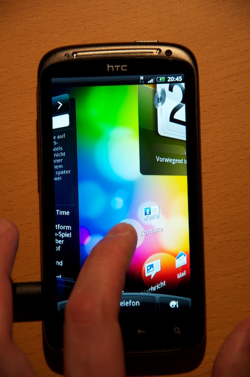 Andererseits passt, auch wegen der qHD Auflösung, verdammt viel Inhalt auf den Bildschirm. So entsteht der Eindruck, dass der Größenunterschied zum Incredible S nicht nur 0,3“ beträgt.