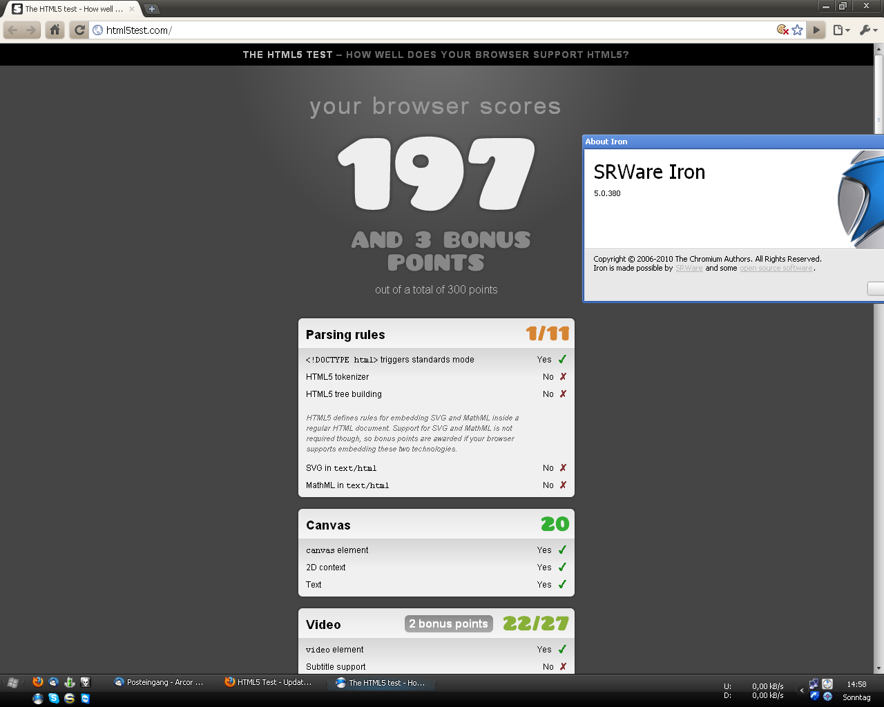 Beta: http://beta.html5test.com/ (400 Punkte) Wenn Punkte von der Beta gepostet werden bitte dazuschreiben! Auch das Maximum an Punkten das zu der Zeit zu erreichen war!
