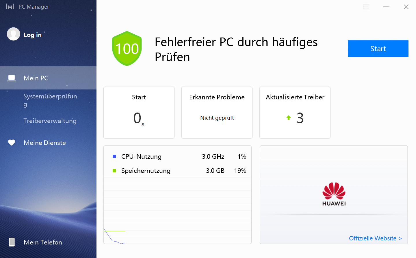 Hier kann ich auf jeden Fall Entwarnung geben, Huawei hält sich echt zurück mit vorinstallierter Software. Das einzige Programm, was drauf war ist der “PC-Manager”. Mit diesem Tool kann man z.B. die Treiber aktualisieren. Ansonsten ist nur eine Verknüpfung zum Handbuch auf dem Desktop sowie eine Video-Anleitung wie man sein Huawei-Smartphone koppeln kann.
