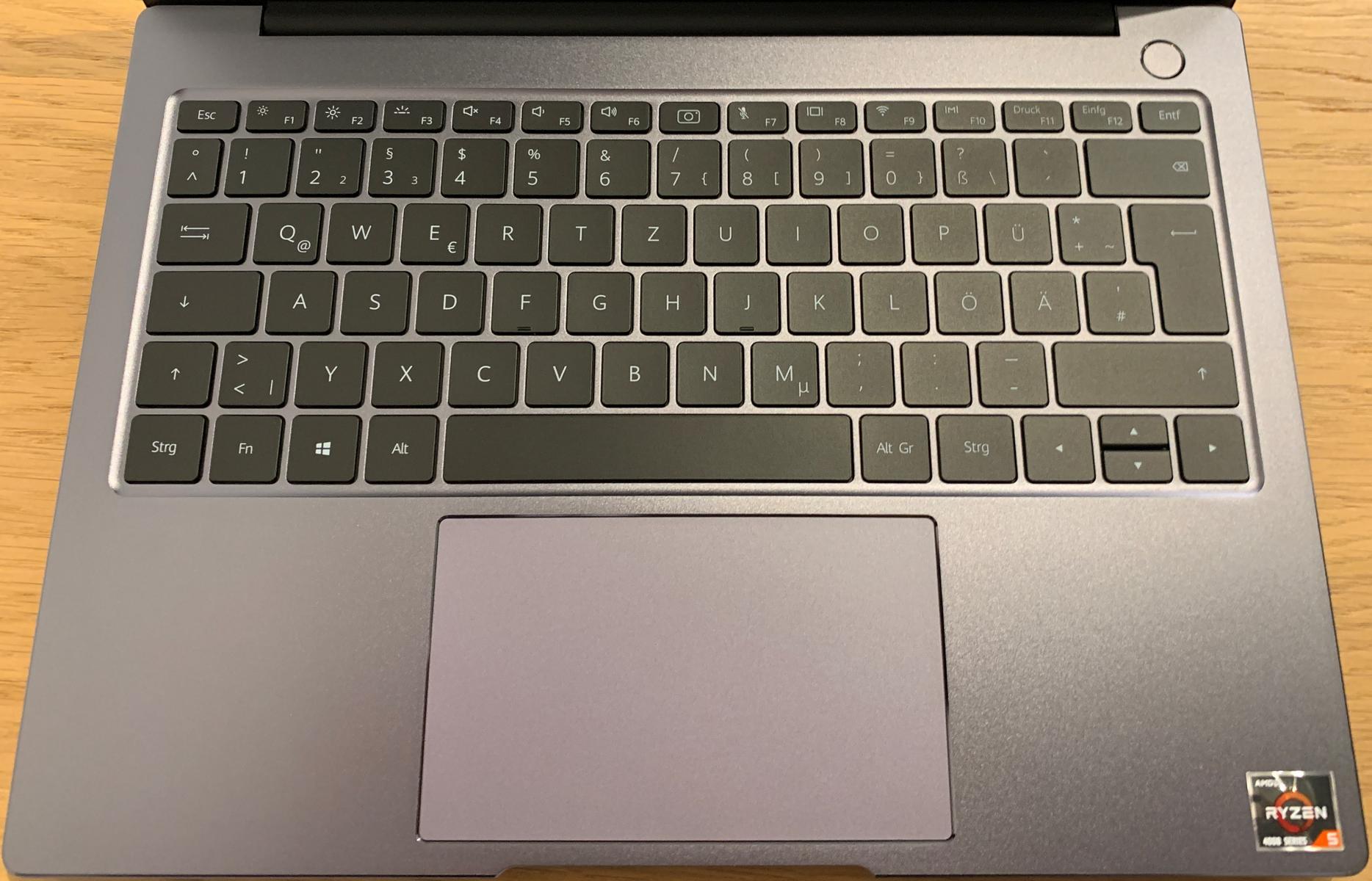Ich habe diesen Testbericht auf dem Matebook 14 geschrieben und bin positiv überrascht von der Tastatur, blind schreiben ist kein Problem. Der Hub ist angenehm und nichts ist schwammig wie man es etwa von Billig-Notebooks kennt. Alle Tasten sind da, wo ich sie erwarten würde, nichts ist irgendwie vertauscht oder arg verkleinert. Die Pfeiltasten sind auch in Ordnung. Die Tastaturbeleuchtung lässt sich in zwei Stufen regeln und schaltet sich nach ein paar Sekunden Inaktivität ab.