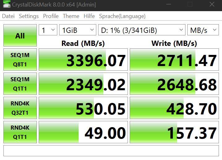 Es ist eine WD PC SN730 NVMe SSD verbaut, welche mit PCIe 3.0 x4 angebunden ist.