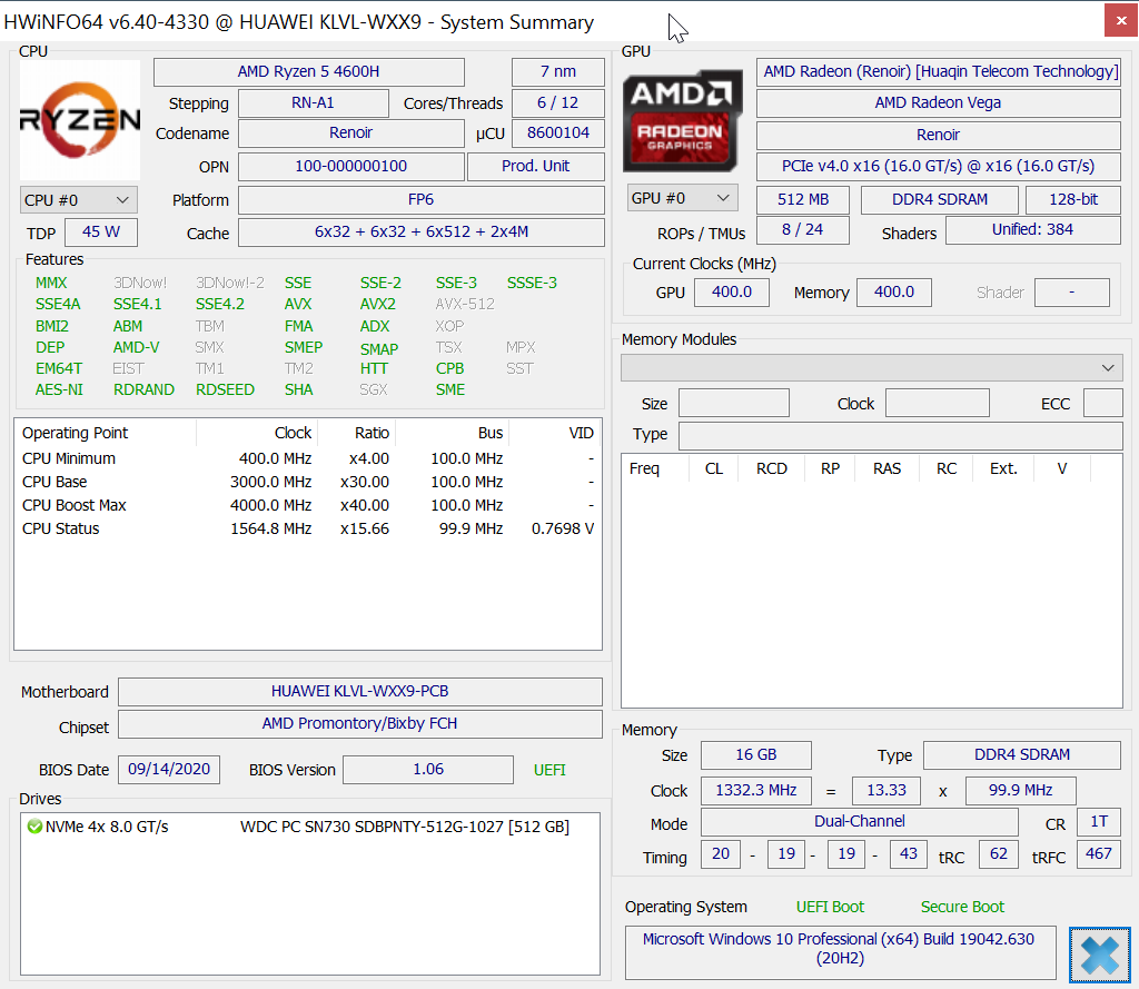 Mein Matebook 14 mit dem AMD Ryzen 5 4600H/512/16GB ist auch vor einer Woche angekommen und gestern fand ich Zeit das System in Betrieb zu nehmen.