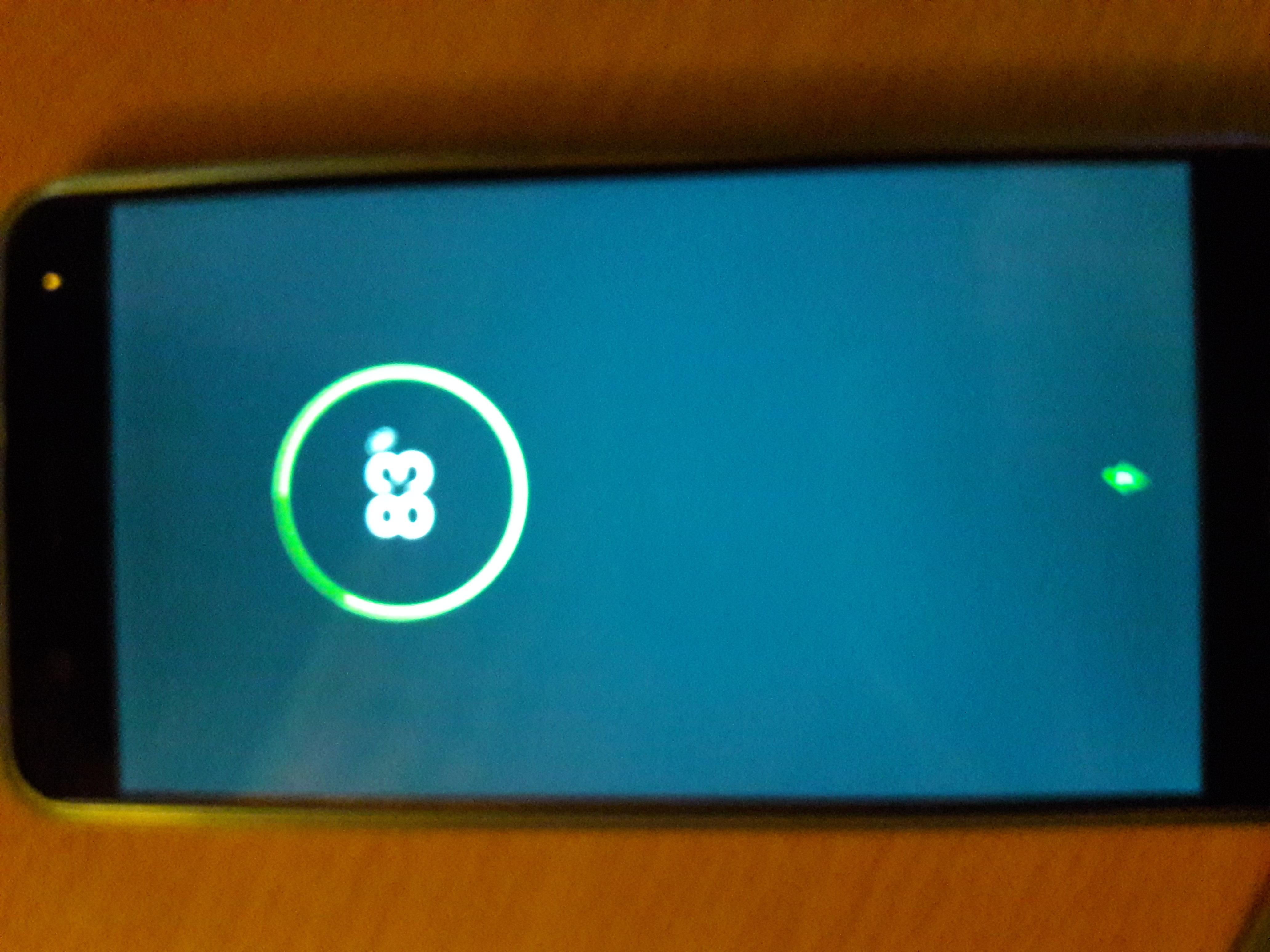 Genau in der Reihenfolge, erst wacht das Display so weiß/pink auf, dann geht es ins blaue über, danach stimmt die Ladeanzeige.
