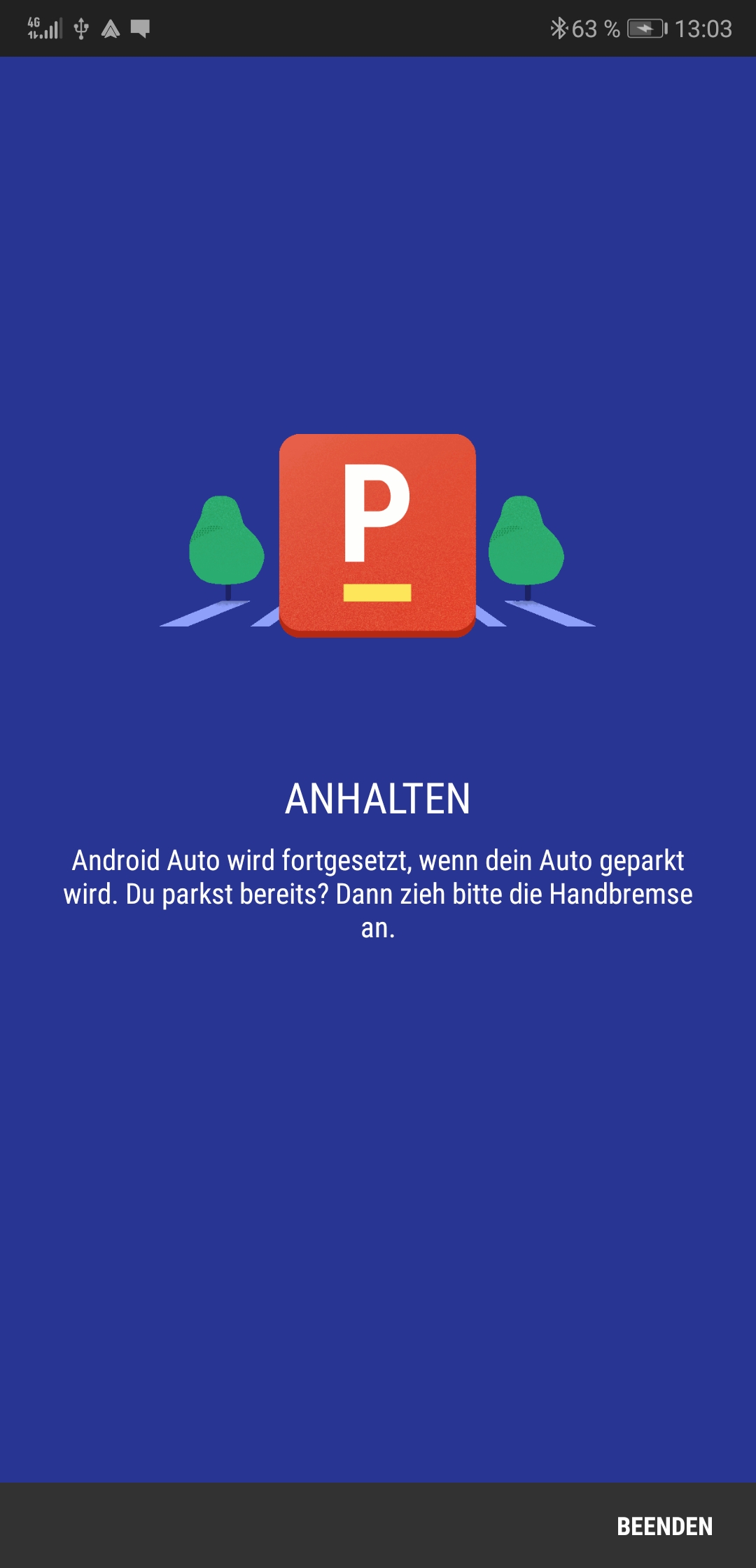 Nach dem einrichten kommt die Meldung das Android Auto beendet wird bis ich geparkt habe... Dabei ist lediglich die Zündung an.