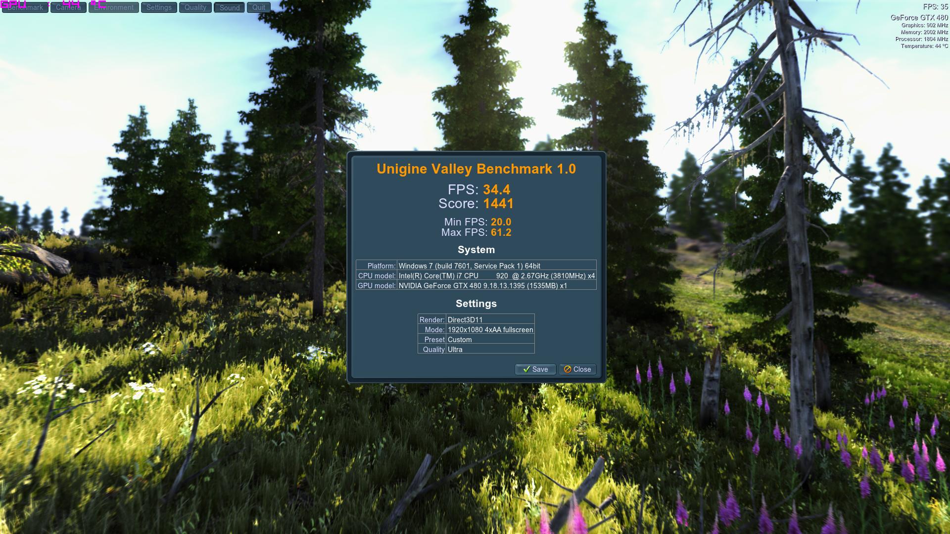 Hier auch mal meine Benchergebisse mit dem Unigine Valley 1.0 Benchmark.