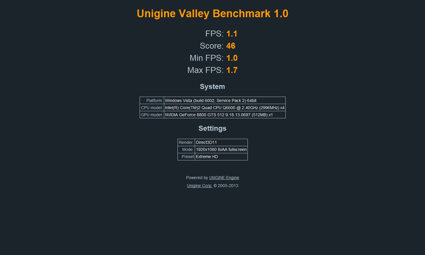Habs auch mal durchgeführt mit 8800GTS512 und Q6600@3Ghz wohl mit bisher niedrigsten Score