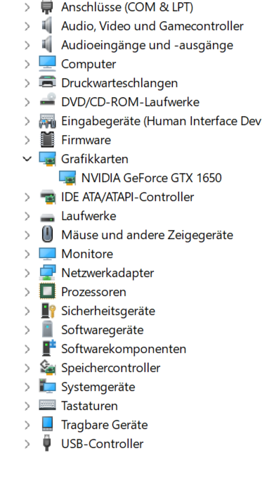 Meine NVIDA GTX 1650 ist im Manager eingetragen, aber nicht die Intel Grafik.