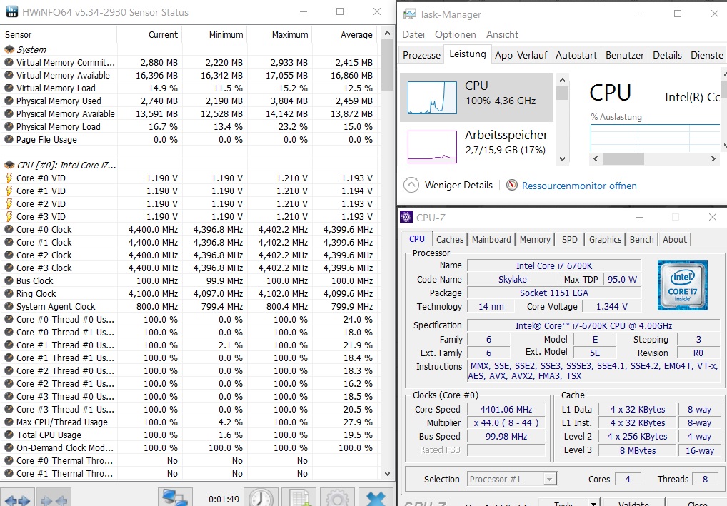 die korrekte BIOS-Einstellung. Habe meinen 6700k auf 4.4GHz übertaktet. Fixed auf 1.3V (max. 65°). HWINFO gibt mir 1.19V aus.Ist das ein Bug oder liegts vielleicht an meiner Hardware (ASrock Fatality Gaming, 6700k, 16GB Ram) ? Version ist aktuell. Kommt bei euch das auch vor?