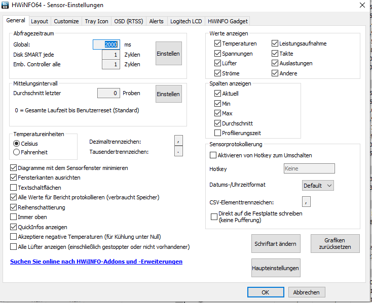 ich bin mit meinem Wissen am Ende. Ich möchte via HWInfo einige Systemparameter (CPU-Temp tctl, DIMM Temp, SSD Tem, VRM Temp, GPU Temp und GPU Fan rpm) aufzeichnen, was bisher auch immer super geklappt hat.
