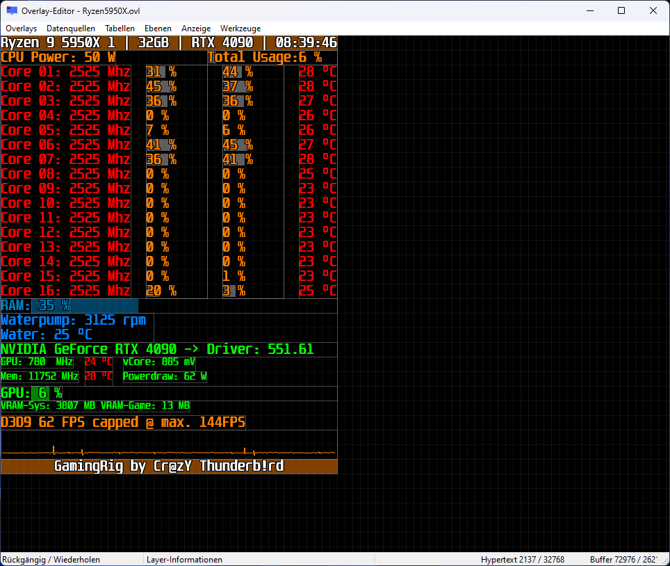 Ich hab mal eine ernstgemeinte Frage. Warum sollte man sich so ein Overlay beim Spielen die ganze Zeit anzeigen lassen?