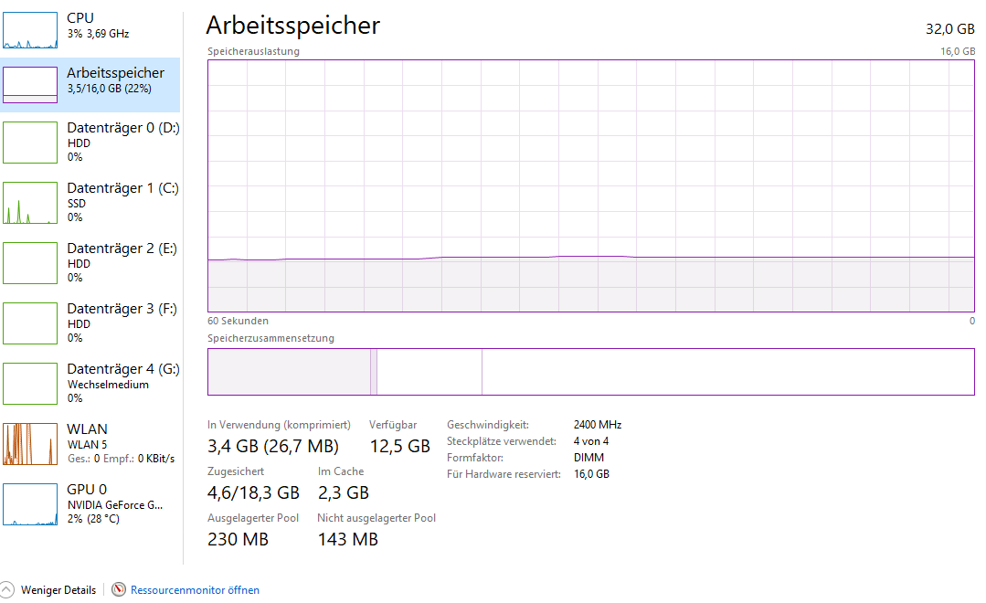 habe 32 GB ram verbaut (Leider nur 2400MHz jaja ich weiß^^).