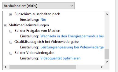Alle Ruhezustände usw. sind in den stark limitierten Energieeinstellungen natürlich deaktiviert. - Einen neuen Energiesparplan habe ich ebenfalls erstellt, dieser ist ebenso stark limitiert wie der normal einzige "ausbalanciert".