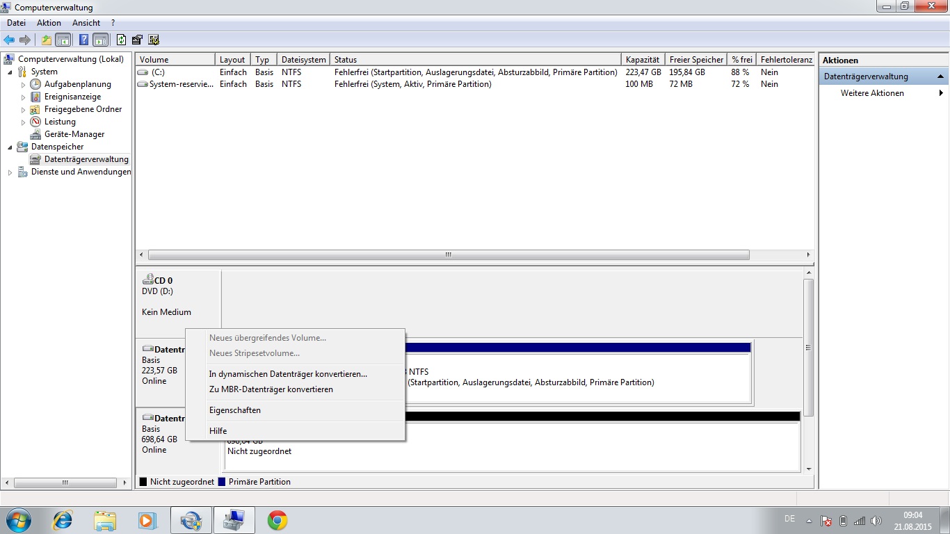 Diese ist in eine Partition mit 700 GB und eine mit 225 GB aufgeteilt.