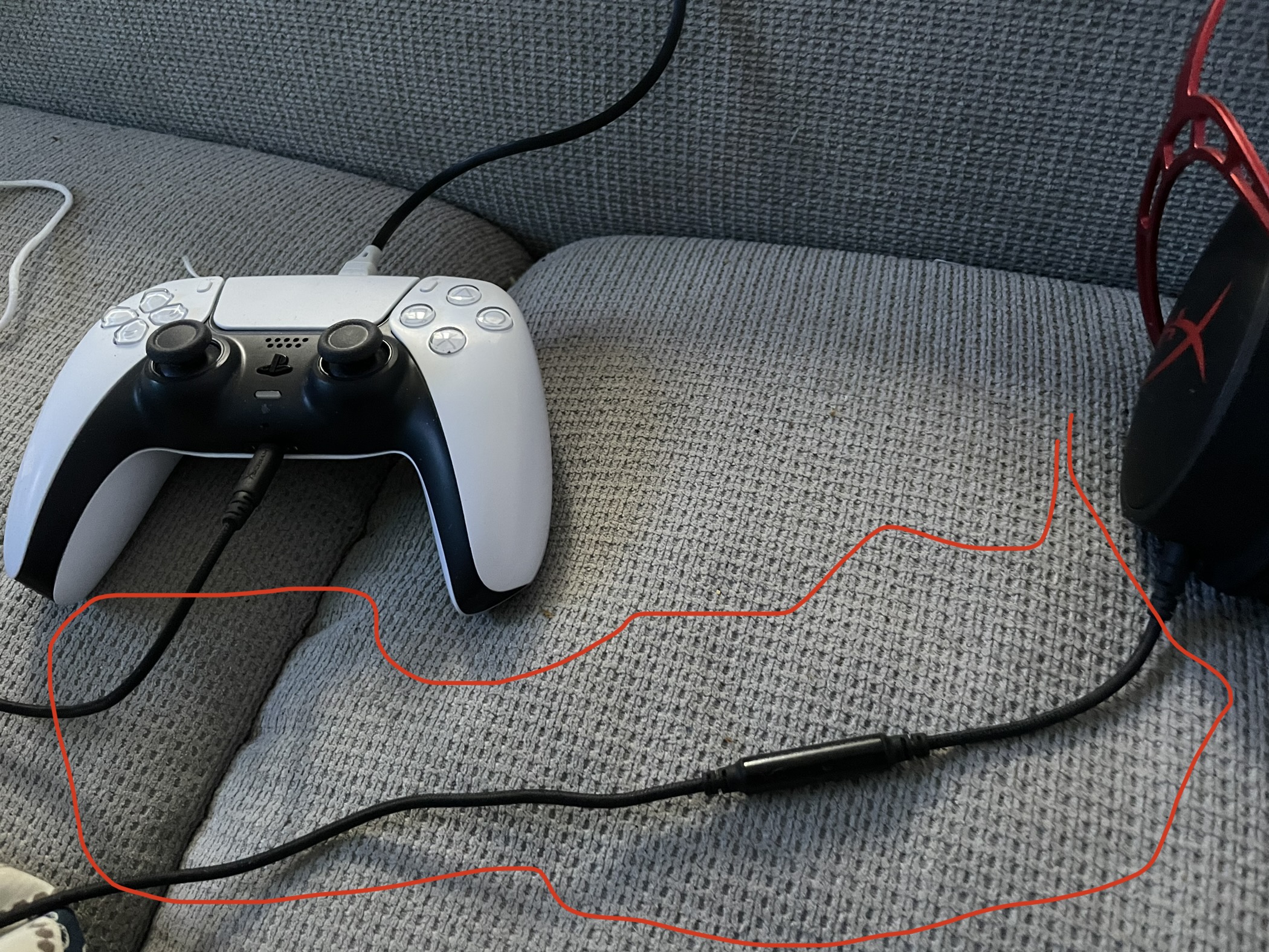 So muss ich das Headset momentan nutzen ,weil das Kabel nicht das richtige wohl ist und viel zu kurz war habe ich es in den Dual Sense Controllet gesteckt was auch wunderbar funktioniert,nur das am Kabel integrierte Mikrofon will ich