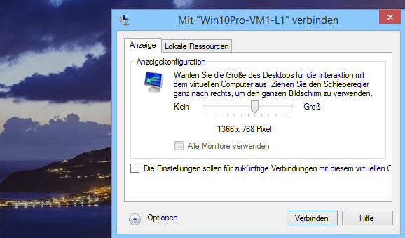 Wenn ich über den Hyper-V-Manager ein Windows 10-Image starte, möchte ich gerne in den erweiterten Einstellungen etwas anpassen.