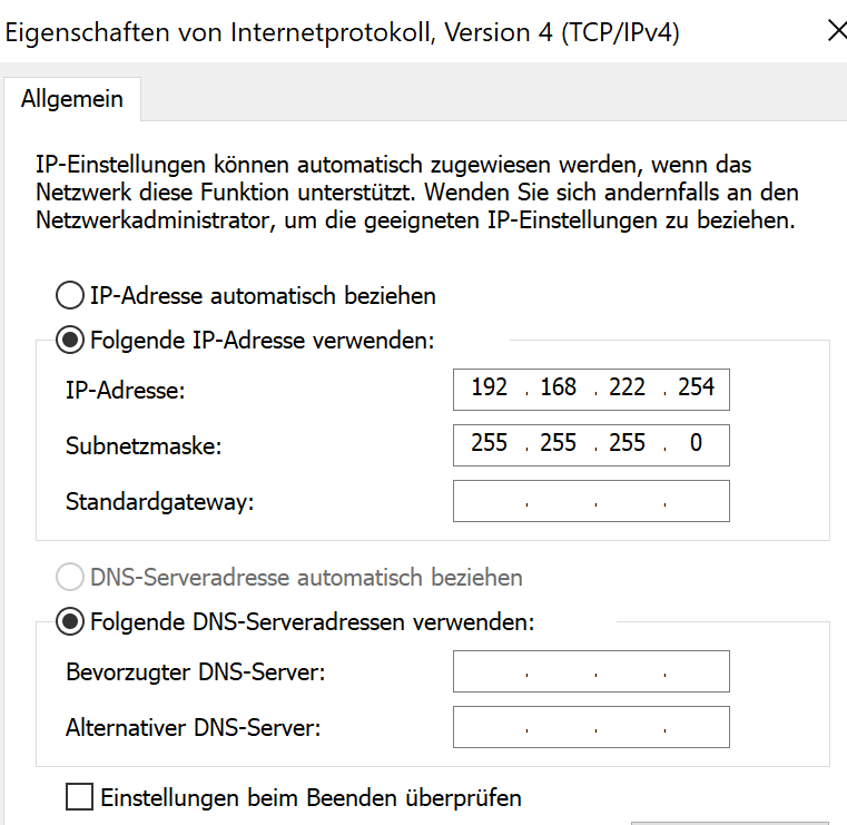 Vorher hatte ich dort 192.168.222.1 eingetragen, damit funktionierte es leider nicht.