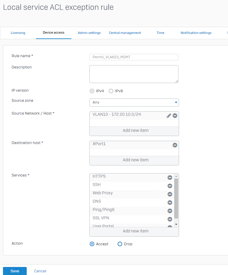 Das merkwürdige ist, nur wenn der Client diese zweite NIC im VLAN 100 hat komme ich auf die Weboberfläche, von anderen Clients aus welche im normalen Client VLAN 10 sind komme ich nicht auf die Weboberfläche und kann die Sophos auch nicht pingen, weder das Inside noch das Outside Interface.