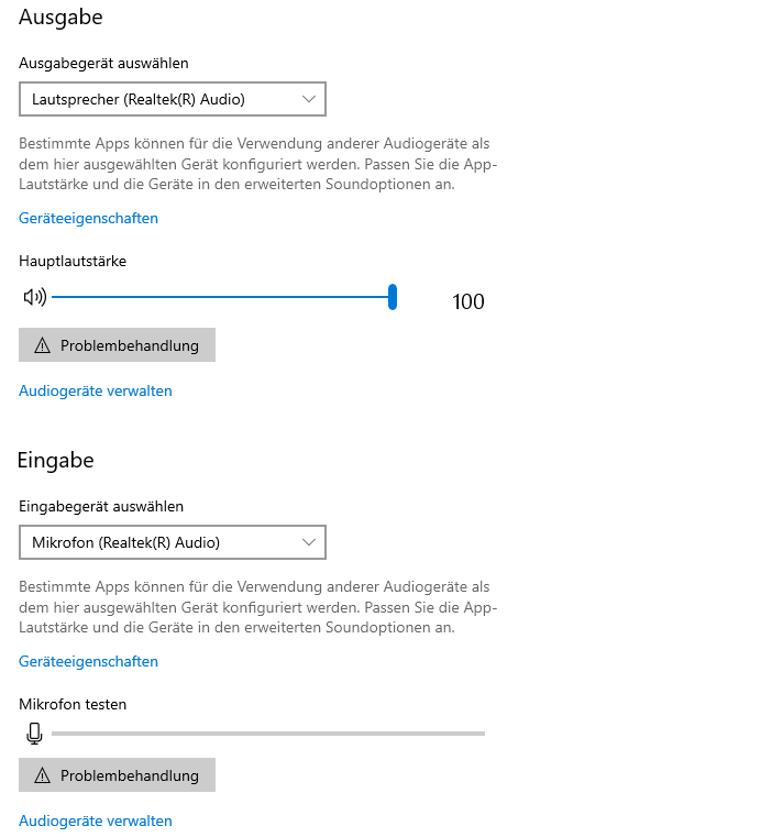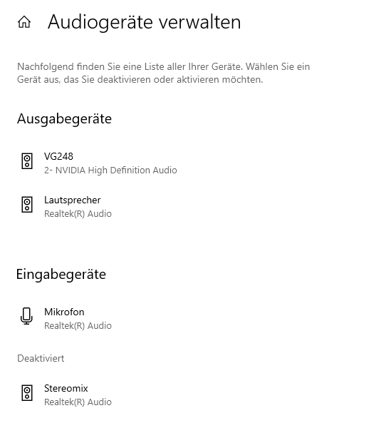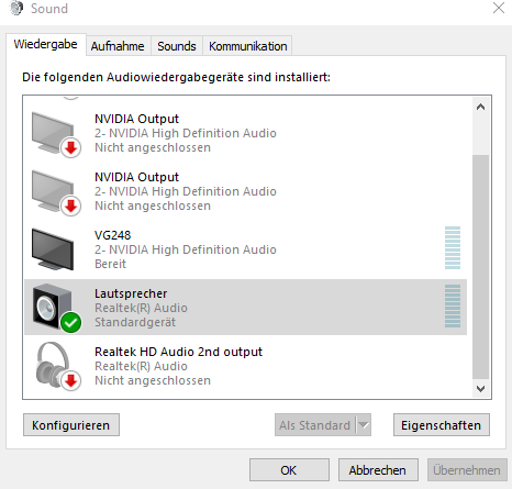 Screenshot von den wiedergabegeräten, inkl. deren Eigenschaften und den einzelnen Unterreitern.