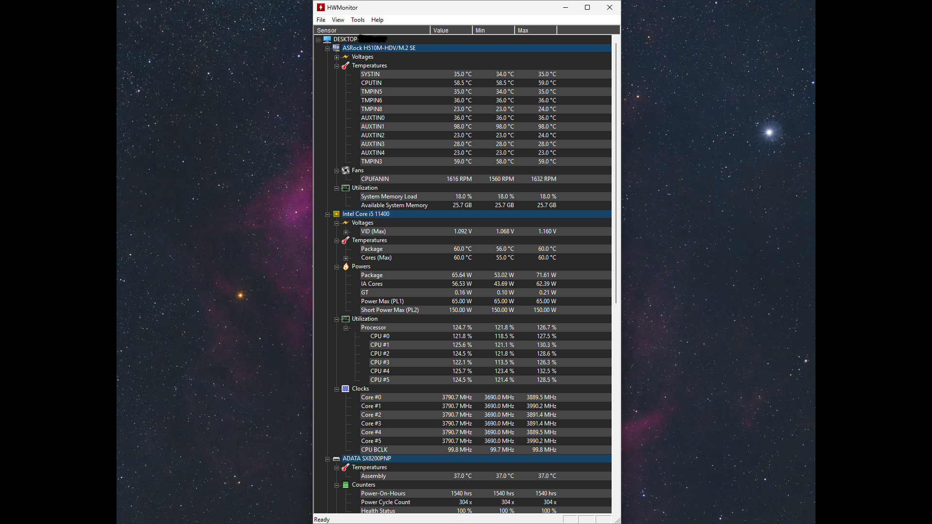 Bei mir ist es so, dass am Anfang alle Kerne auf den Maximaltakt von 4,4 GHz hochgehen und ab ca. 60°C dauerhaft zwischen 3,6 und 4,0 GHz laufen.