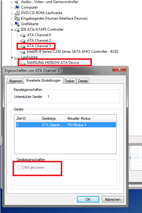 - Platte wird im Bios normal erkannt (AHCI und IDE )